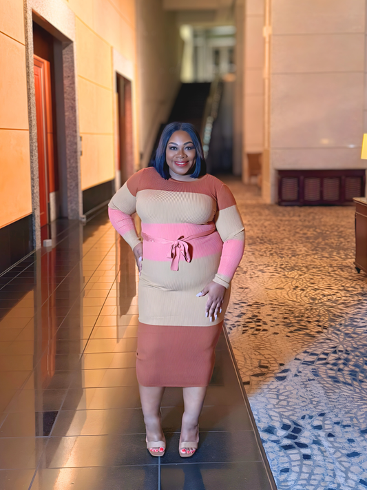 Stretch dress Round neckline Long sleeve Self-tie waist strap 95% Polyester 5% Spandex Hand wash...
